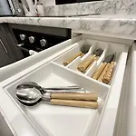 Het appartement heeft een keuken met airconditioning voor optimaal comfort. Deze accommodatie biedt gasten de handige voorziening van een haardroger en handdoeken in de badkamer. Er is ook een apart toilet en een douche.